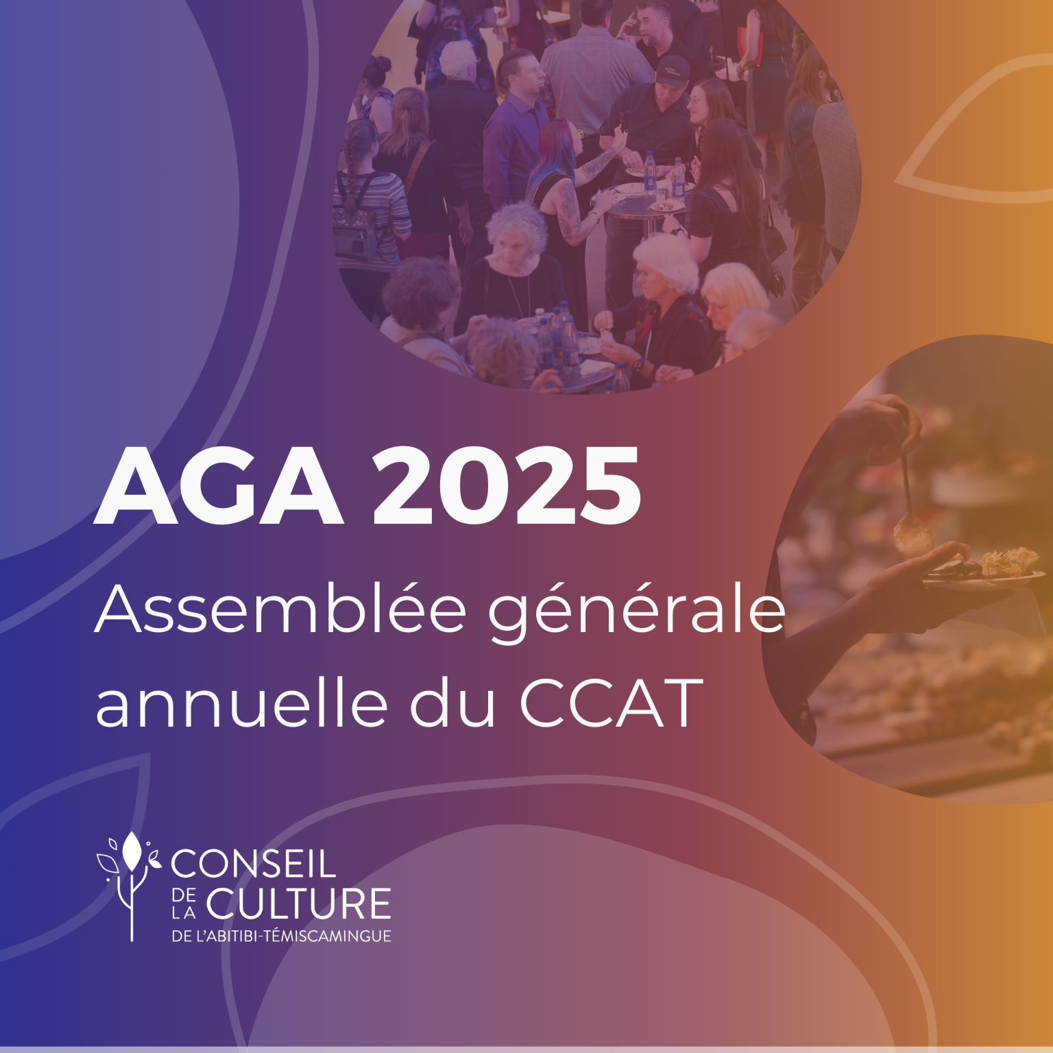 Le Conseil de la culture de l’Abitibi-Témiscamingue a le plaisir de vous convier à son Assemblée générale annuelle 2025, qui se tiendra en formule 5 à 7 dans une ambiance conviviale, avec cocktail, bouchées et réseautage.