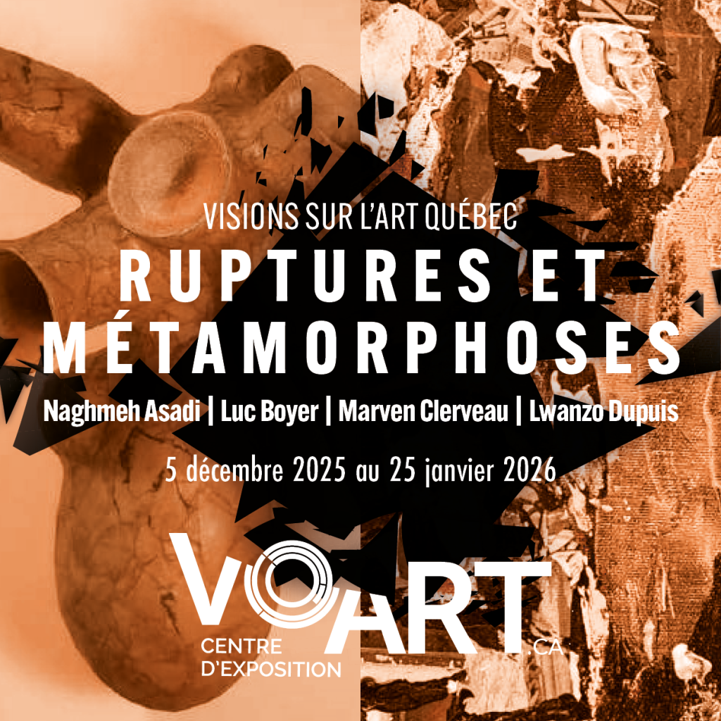 VOART Centre d’exposition de Val-d’Or présente du 5 décembre 2025 au 25 janvier 2026, Ruptures et métamorphoses une exposition collective regroupant 4 artistes professionnels vivant avec une divergence capacitaire. Il s’agit de Naghmeh Asadi, Luc Boyer, Marven Clerveau et Lwanzo Dupuis. Vernissage le 5 décembre 2025 à 17 h en présence des artistes avec interprétation LSQ. Performance musicale de Mohamed Ghoul. Entrée libre.