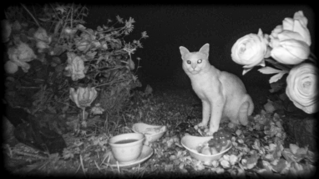 Pour ce projet, les artistes ont filmé la nuit avec des caméras de chasse infrarouges sur une période de cinq ans, accumulant une centaine d’heures de data photos et vidéos. Les caméras étaient installées dans la campagne près du village de Montcerf en Outaouais et dans un jardin de Montréal, permettant de capter sur de longues périodes la faune et la flore après le coucher du soleil. Poème visuel en noir et blanc, Un Jardin la nuit est une œuvre d’une étrange beauté qui offre un accès privilégié à un monde secret. Des chevreuils, des ratons laveurs, des chats, un renard et un lapin apparaissent dans leur intimité naturelle tandis que la végétation poursuit son cycle de vie. D’autres images mettent en scène différents objets surréalistes et des personnages fantomatiques, sans oublier une luciole animée (créée par Claude Cloutier) et quelques esprits malicieux. Un Jardin la nuit s’adresse à un public de tous âges, car le projet suscite différentes émotions: émerveillement face à la beauté de la nature, amusement devant certains épisodes cocasses, ou souvenir des peurs de l’enfance, lorsqu’un lieu familier se teinte d’étrangeté à l’arrivée de la noirceur.