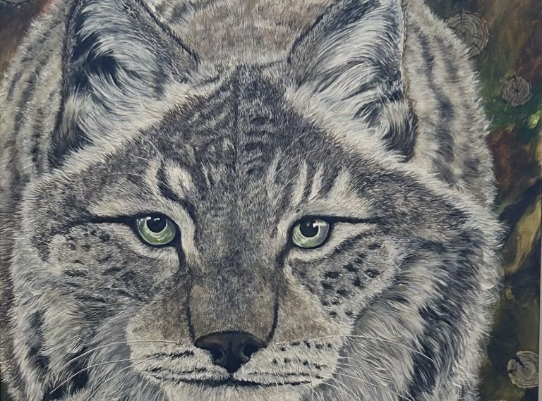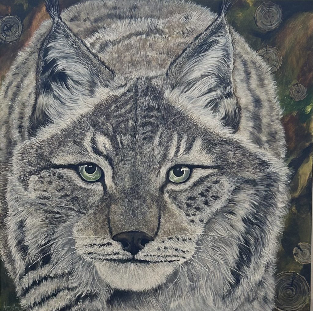 Je suis artiste animalier basée en Abitibi, autodidacte maintenant travailleuse autonome dans les arts visuels. Mon travail explore la relation entre la nature et ses perturbations écologiques : je souhaite alerter le public sur la destruction des habitats fauniques, tout en conservant la beauté intrinsèque de la flore et de la faune.
