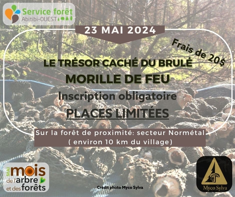 En collaboration avec le Service forêt, la MRC offre une formation sur la cueillette des morilles de feu avec Myco Sylva, le 23 mai prochain de 9 h à 16 h 30 dans la forêt de proximité, secteur Normétal.