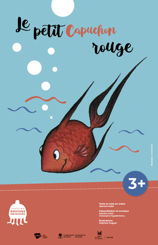 Émerveille-toi devant le récit du petit Capuchon rouge qui raconte l’histoire de Clotilde, une fillette qui reçoit de sa grand-mère, un cadeau bien spécial : un poisson rouge qu’elle appelle Capuchon. Nageant dans la rondeur de son bocal, Capuchon rêve de voir la mer. Un jour, la chance lui sourit et Plouf ! Il plonge dans la mer où il découvre les trésors sous-marins. Mais soudain, le loup de mer surgit.