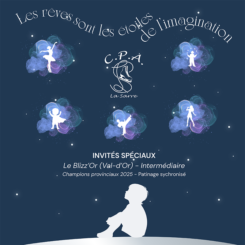 Le Club de patinage artistique La Sarre présente son 52e spectacle annuel intitulé « LES RÊVES SONT LES ÉTOILES DE L’IMAGINATION ».